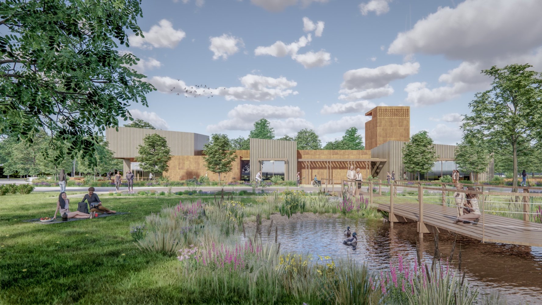 Our architects designed a state-of-the-art net zero carbon gateway building, a new community sports hub, using sustainable materials like timber and weathered steel – with green roofs and minimal operational costs, nestled into the landscape. The building includes multi-use activity studios, a nursery, community rooms, bowls club and a tower with indoor climbing area and an engaging and accessible viewing platform for users to experience the nearby wildlife habitats of Brent Reservoir. A separate café provides an additional meeting point and offer opportunity for community integration with the wider park functions which includes adventure golf, a series of play areas, skateboard and BMX facilities, community orchards, gardens and sculpture park.