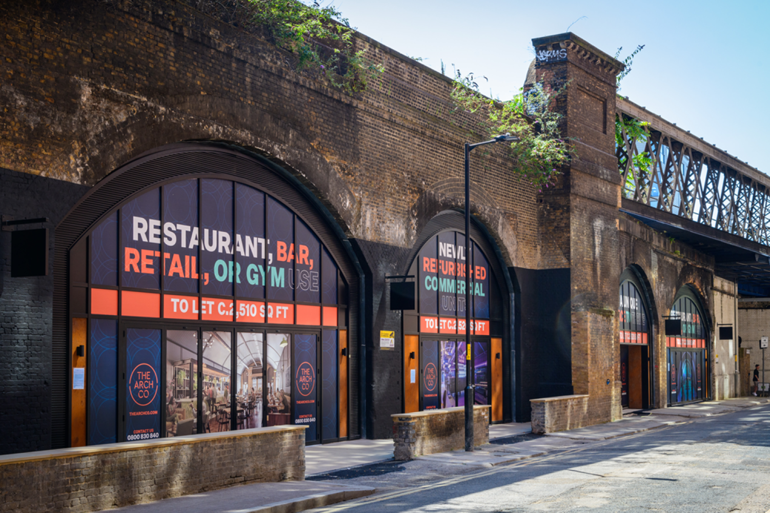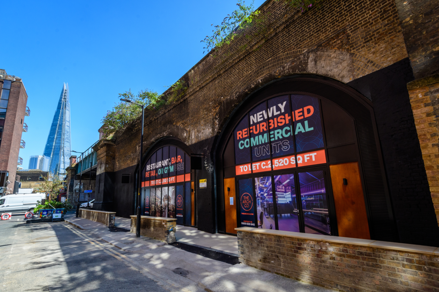 The arches, situated under a 19th century railway viaduct between Southwark Bridge Road and Great Guildford Street, have undergone extensive renovation and revitalisation works, including the re-lining of all arch spaces, new insulated floor slabs suitable for restaurant use, energy efficiency upgrades, and glazed front infills.