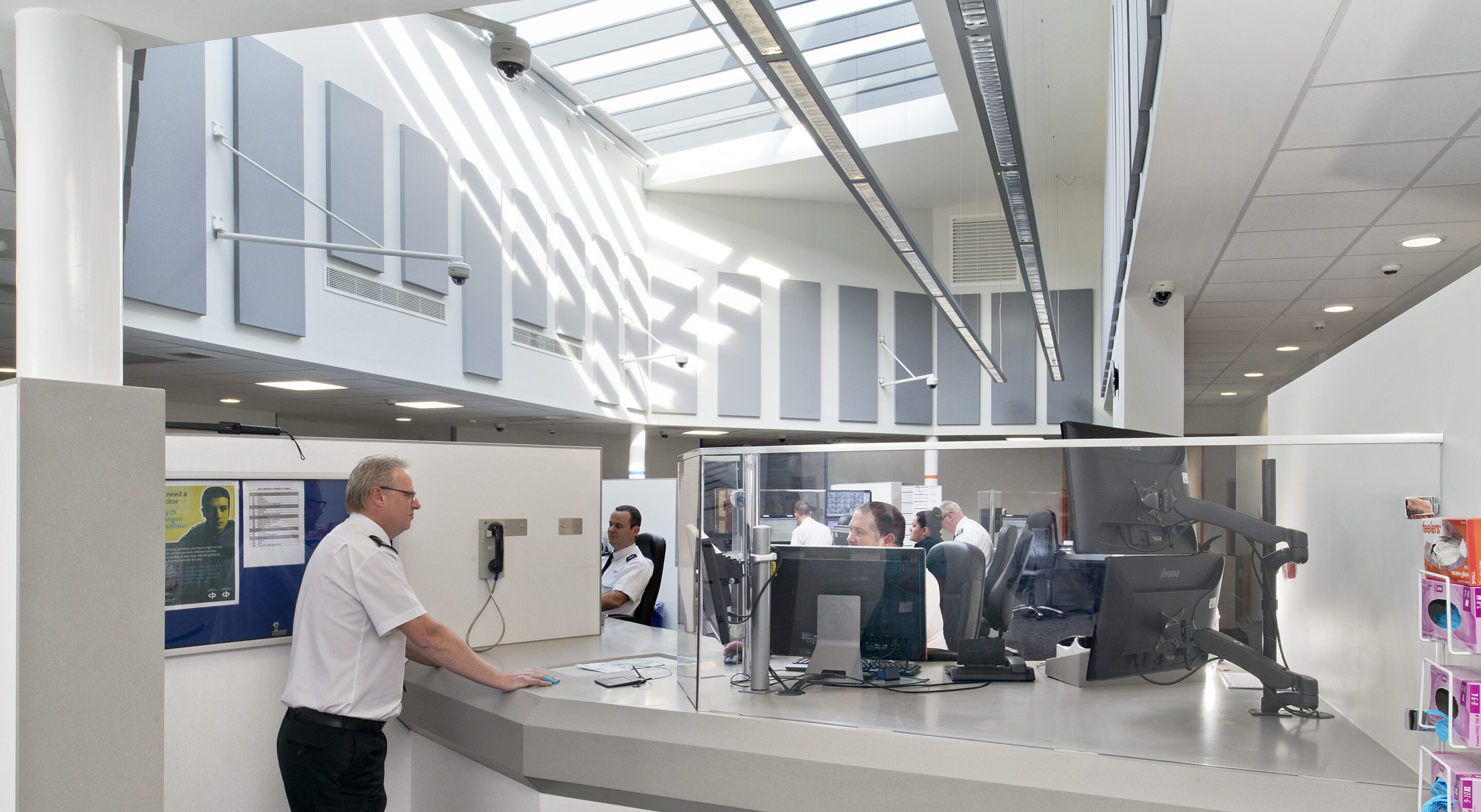 This project began as the addition of a new floor on the existing 1940's police headquarters building but then grew significantly to include: refurbishment of existing facilities, an extension to the side of the building spanning two storeys, and a new building providing catering and breakout space.