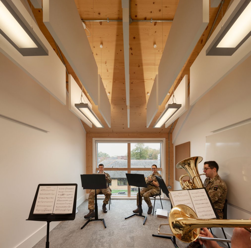 The new purpose-built space can now house all 54 musicians serving under British Army Band Sandhurst in an acoustically optimised space for rehearsals and performances.