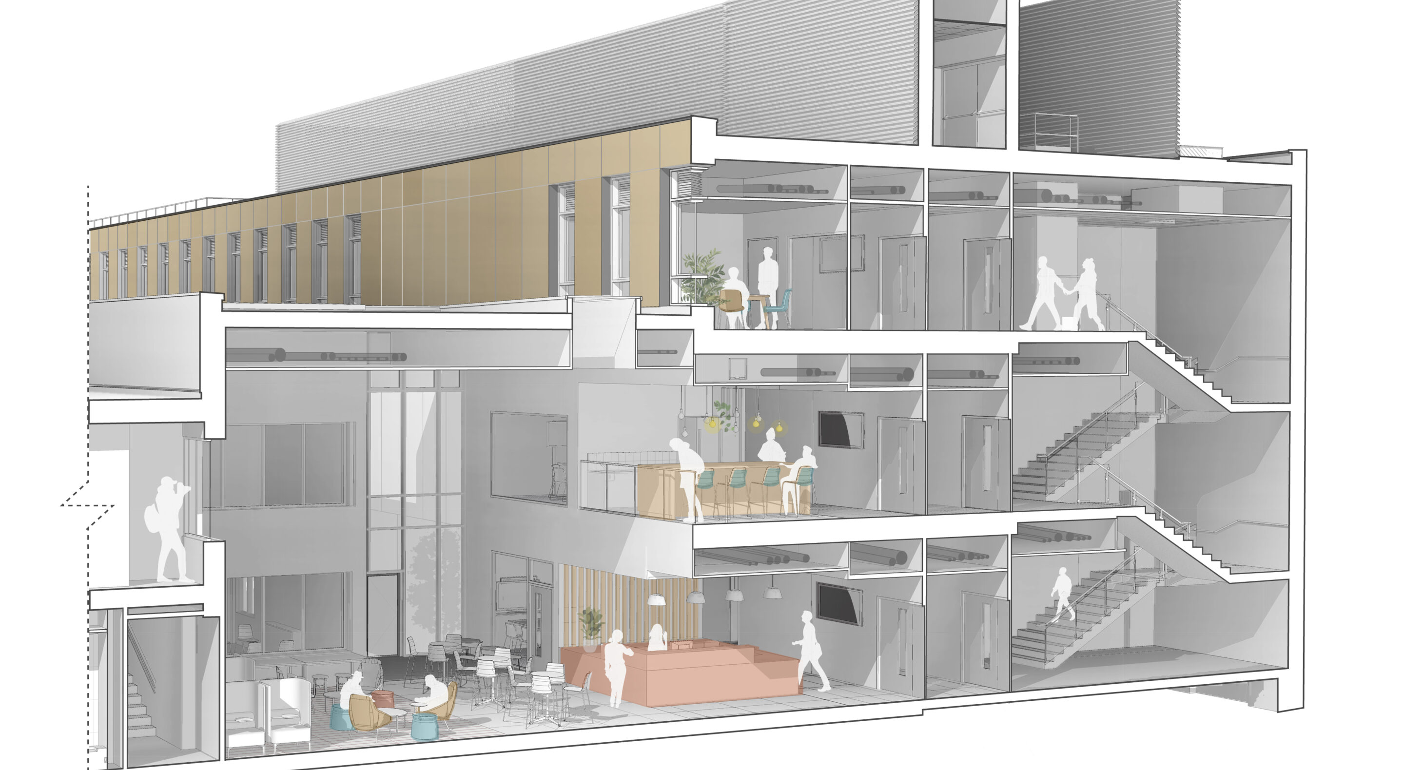 To bring the existing building into the modern age, we conducted an elevational study for the in which various external treatments were considered and presented for client feedback.