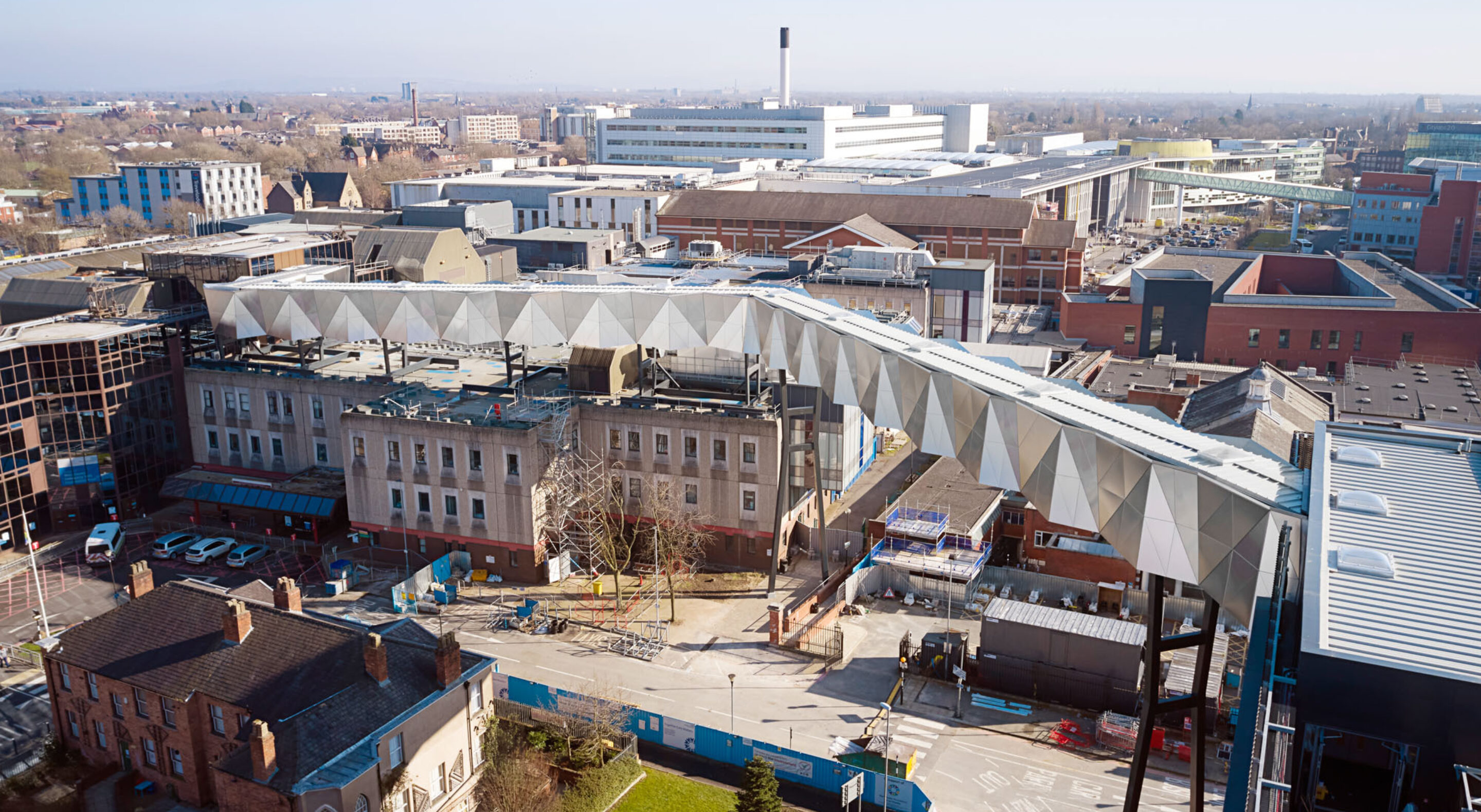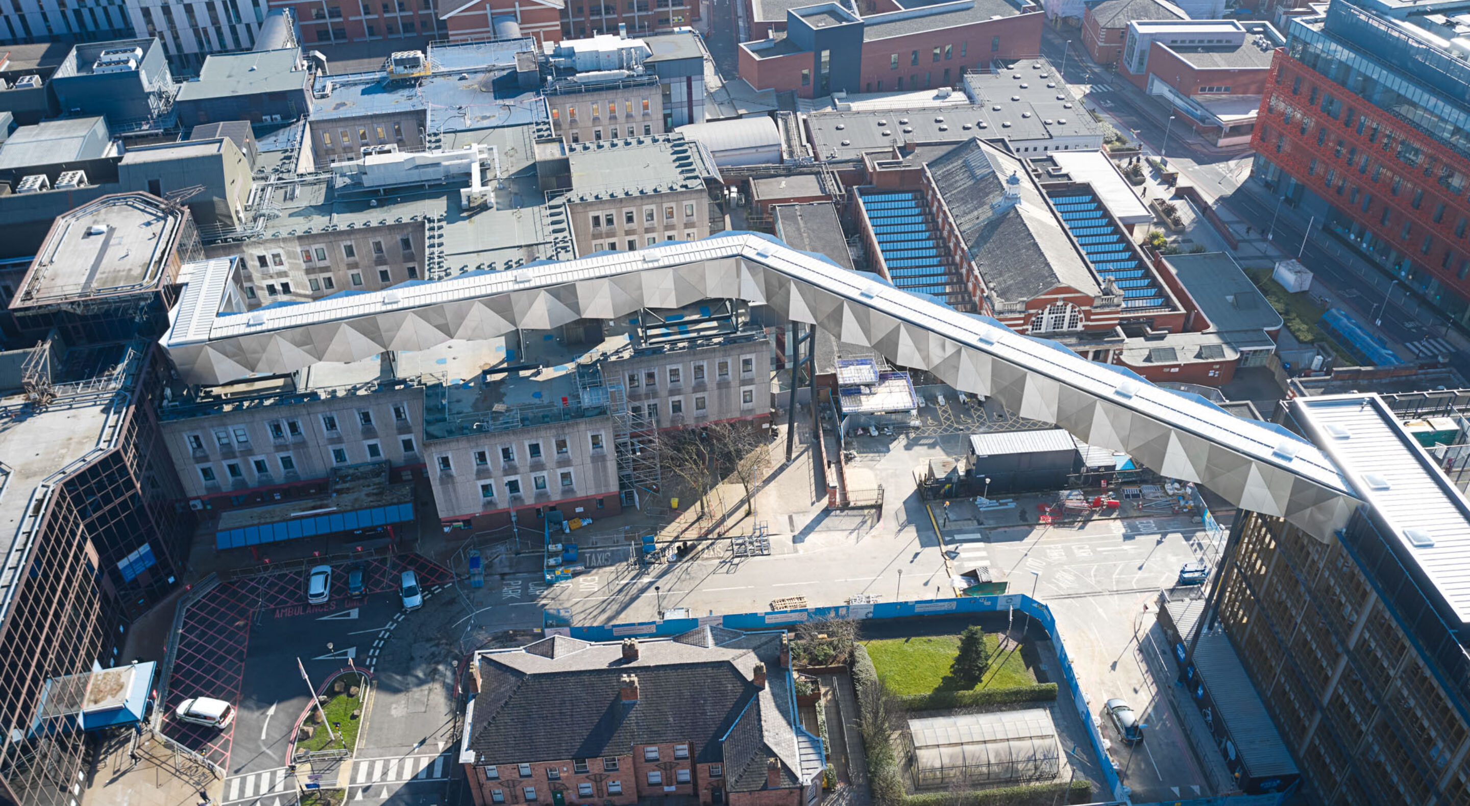Pick Everard was appointed to deliver a brand-new 130m link bridge and helipad for the Manchester Royal Infirmary (MRI), with the aim of creating a 24-hour access primary helicopter landing site - the first of its kind in central Manchester.