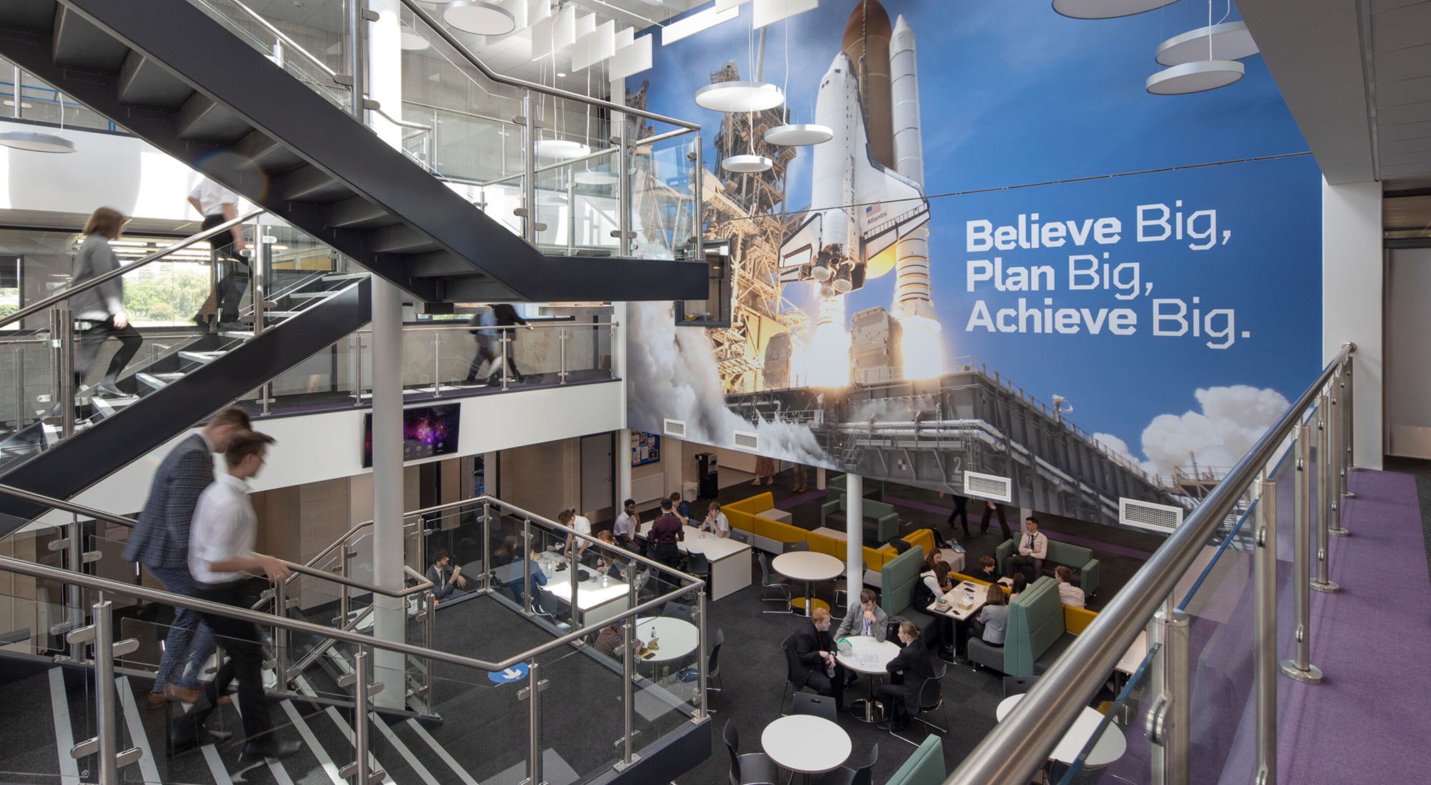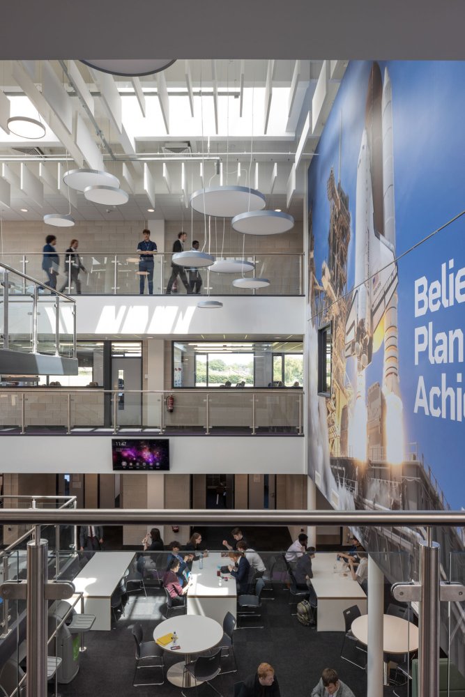 This project expanded Kettering Science Academy to accommodate more students by creating new teaching and breakout spaces for sixth formers. Designed with a full height light-filled atrium, the new building is equipped to a high specification with accommodation over three floors including classrooms, a lecture theatre, study space and socialising and eating facilities.