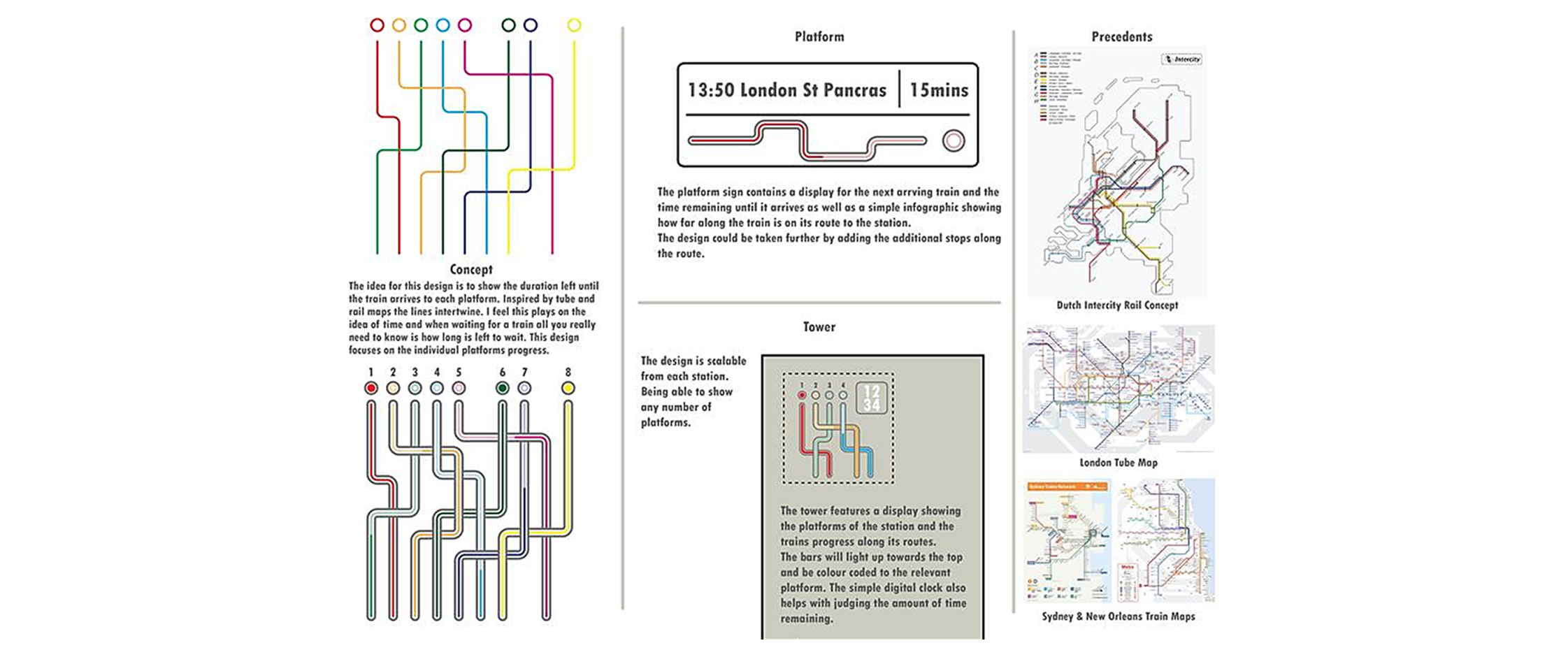 The competition sought to explore and interrogate the best way to display and communicate time across Network Rail’s across UK stations, estates and digital platforms in the 21st Century.