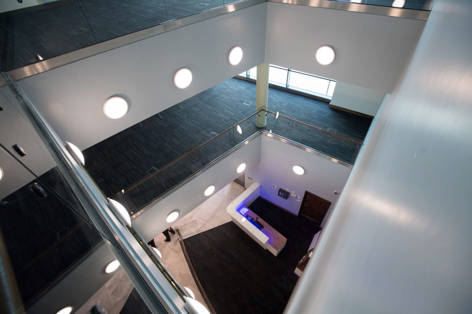 The new Northern Accommodation Building was required to provide modern office accommodation with breakout spaces and informal meeting areas, along with a gym and enhanced staff welfare facilities, over three storeys. It was conceived to act as a central base for policing in the north of Northamptonshire, housing around 400 operational and administrative staff.