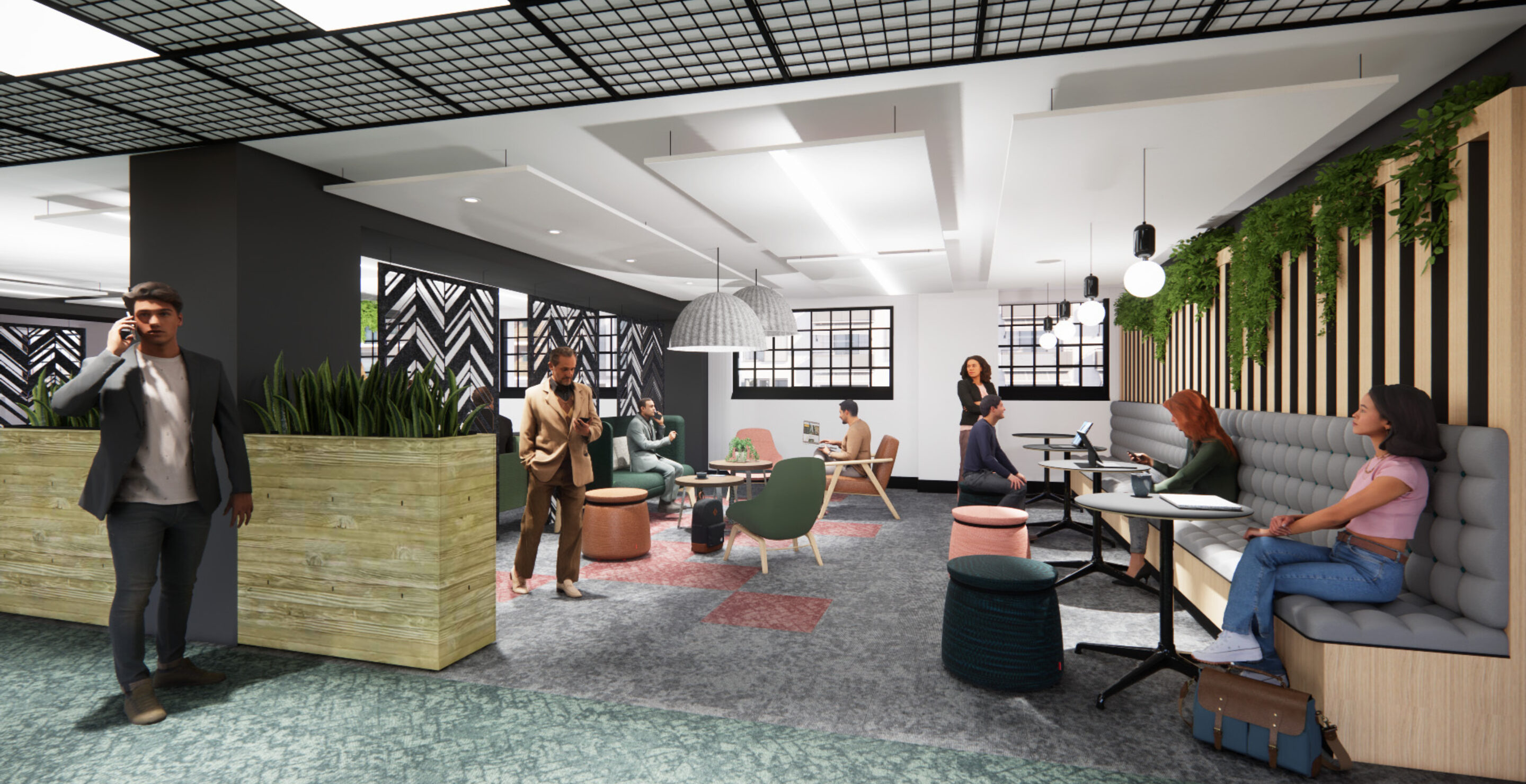 The Interior Design team was asked to provide an office design which aided with the changing office dynamics following the COVID19 pandemic. The client provided the team with a brief which highlighted the requirements to move beyond a traditional office environment. Looking instead to provide breakout ‘away from the desk’ areas which encourage a more flexible working environment, that inspire collaborative working and interdepartmental communication. As a result, only a small quantity of traditional desks were provided per floor, with the focus on a more adaptable work space.