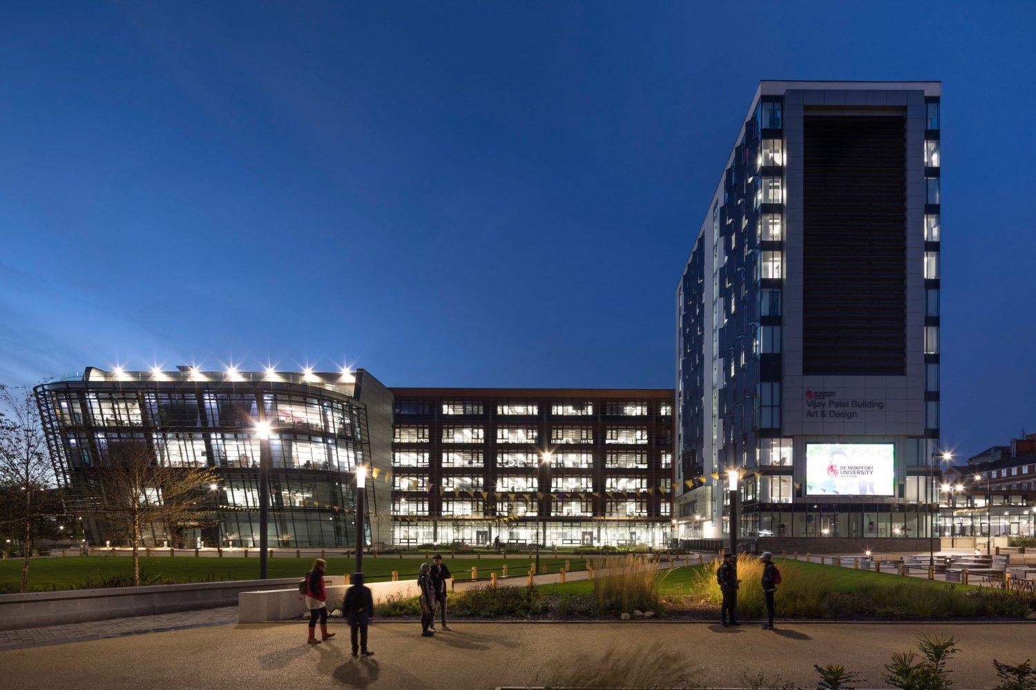 The Vijay Patel Building was delivered as the flagship development within a campus-wide redevelopment programme for De Montfort University, providing new facilities for fashion and textiles, art, design and architecture. The building incorporates a 300-seat lecture theatre, with tiered seating that can be retracted when not required, lending more flexibility to the use of the space.